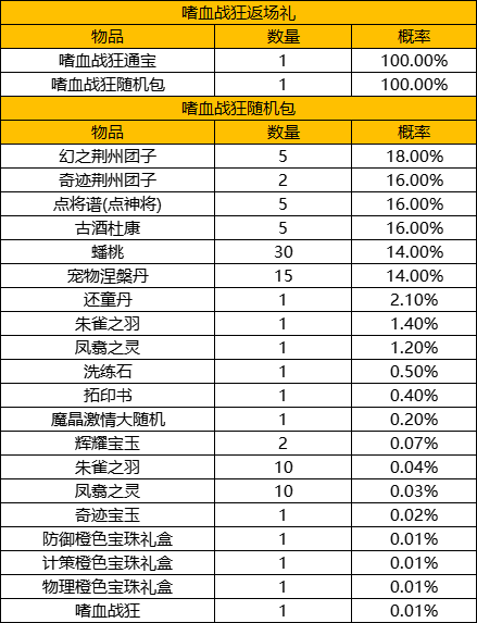 ③ 累计充值300元:虎骨酒*106、朱雀重宝*1