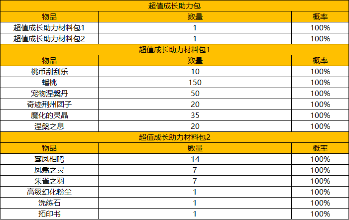 以下为三分天下本次全新礼包配置公示:
