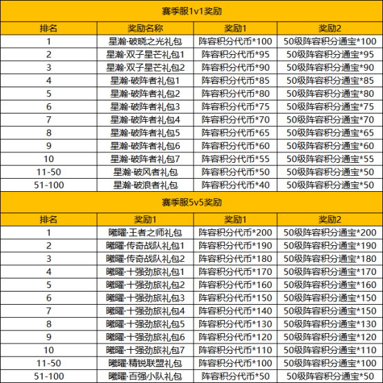 1)例行维护后本赛段结算,结算后将发放1v1,5v5奖励。