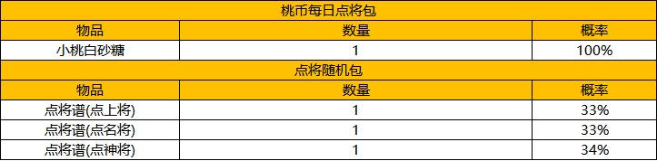1)每日点将兑换券上架(售价:128桃币)。