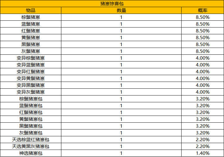3)猪崽惊喜包: