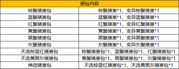 2)变异猪崽随机包(随机包内产出的所有坐骑以及捆包均可交易)。
