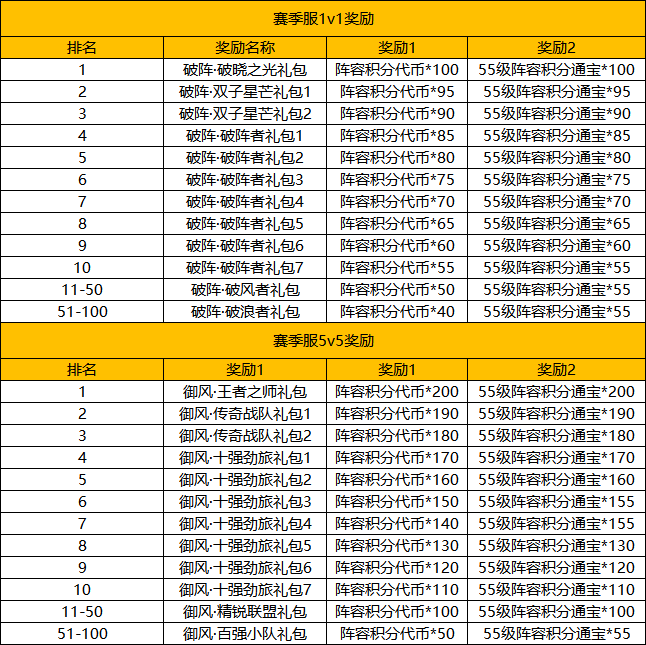 1)例行维护后本赛段结算,结算后将发放1v1,5v5奖励。