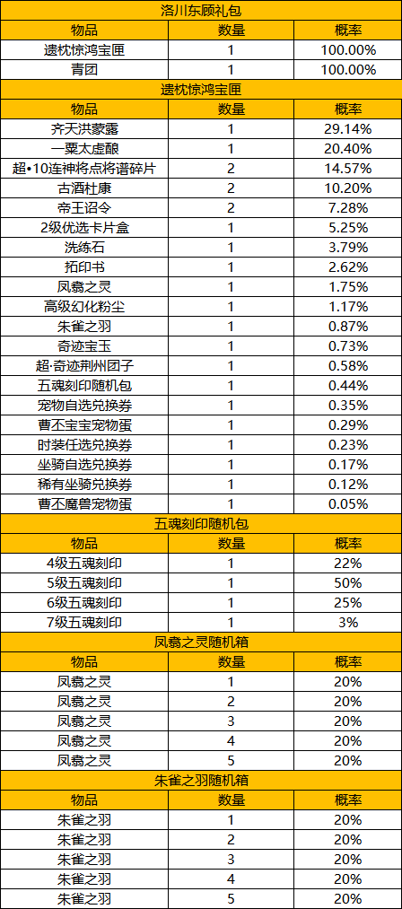 4. 全新礼包内容与概率公示。